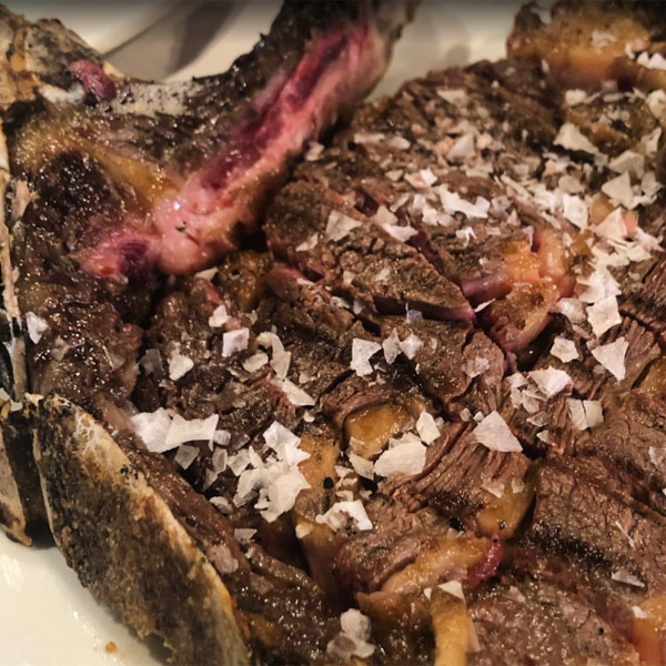 El plato que más fielmente representa nuestra esencia no podía ser otro que el chuletón de vaca vieja cocinado a fuego lento en nuestras brasas. Además, se pueden degustar otras carnes como el solomillo de ternera, entrecot o costillas de ternasco.
